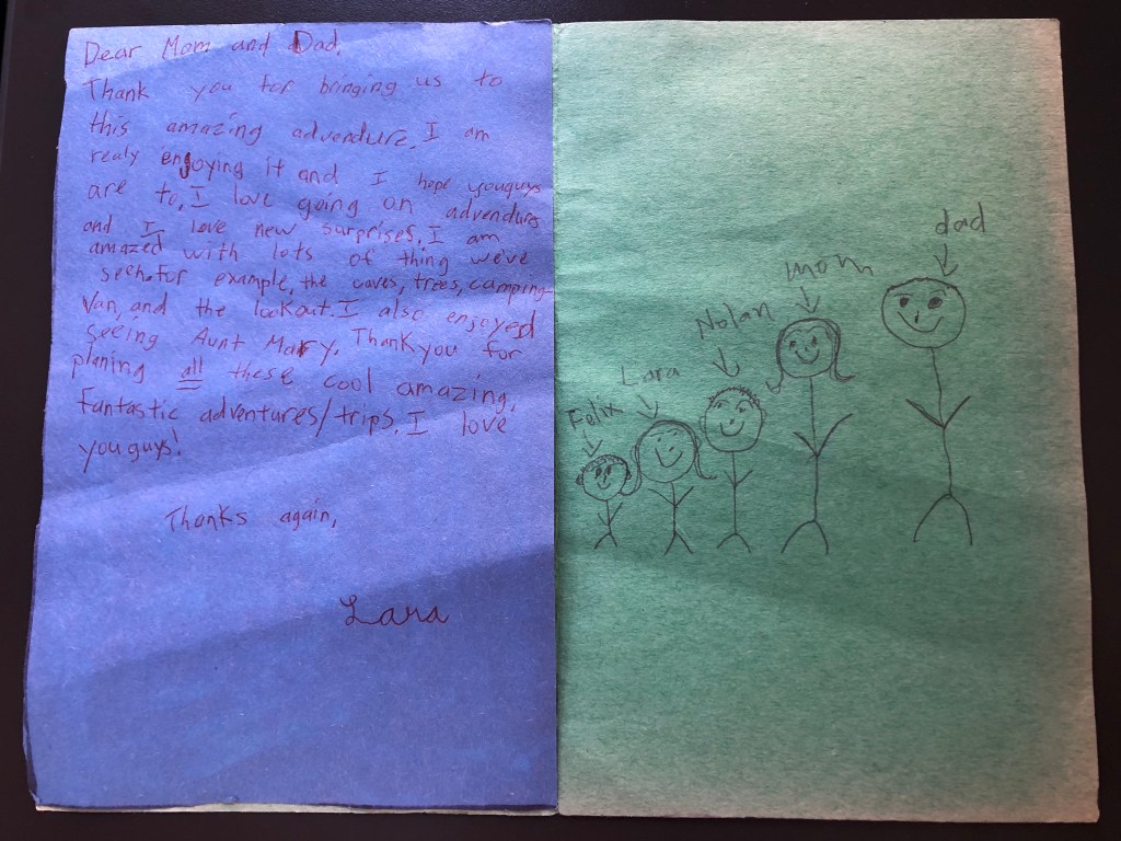 Domestic Travel Priceless gems by liilingon 2021-Oct-02 While cleaning out a drawer, I discovered this little surprise. This was in reference to the surprise Thanksgiving trip in an RV in 2018. She was 9 years old. Related