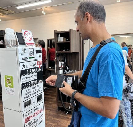 We were going to wait until South East Asia to get a cheap haircut, but when we saw $11 haircuts in Fukuoka, we decided to try it out. It was a unique experience to purchase our haircuts via a machine. Neil translated the flowchart of what was on offer and how to get your haircut.